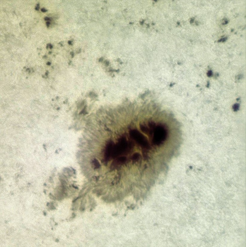 Damit können schon die Sonnenflecken (Bild 8) auf der Oberfläche der Sonne gesehen werden sowie die Entwicklung der Flecken täglich verfolgt werden.